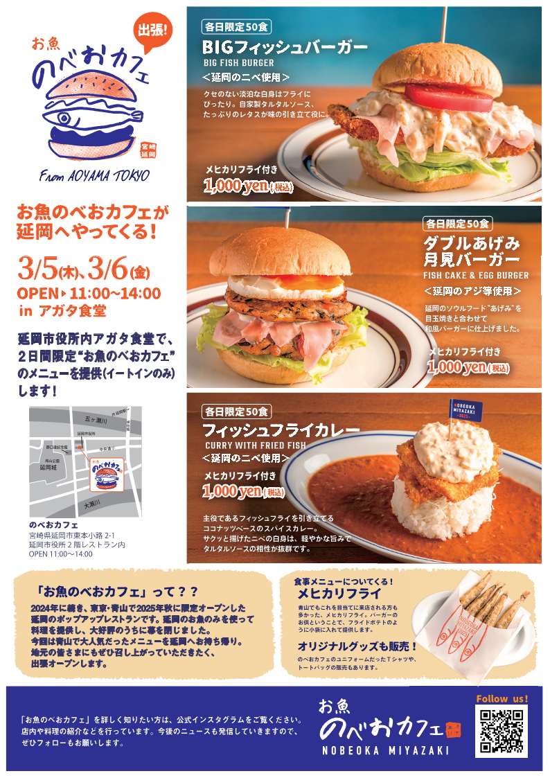 フェアでは、昨年10月~11月の2か月間限定で東京都渋谷区に延岡市のポップアップレストラン「お魚のべおカフェ」をオープンし、1,138名の来店があるなど大好評のうちに幕を閉じました。